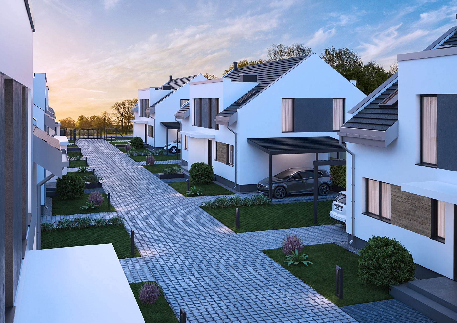 Wykonane z najwyższą starannością, nowe i bezpieczne osiedle sześciu domów dwurodzinnych w Zielonej Górze.